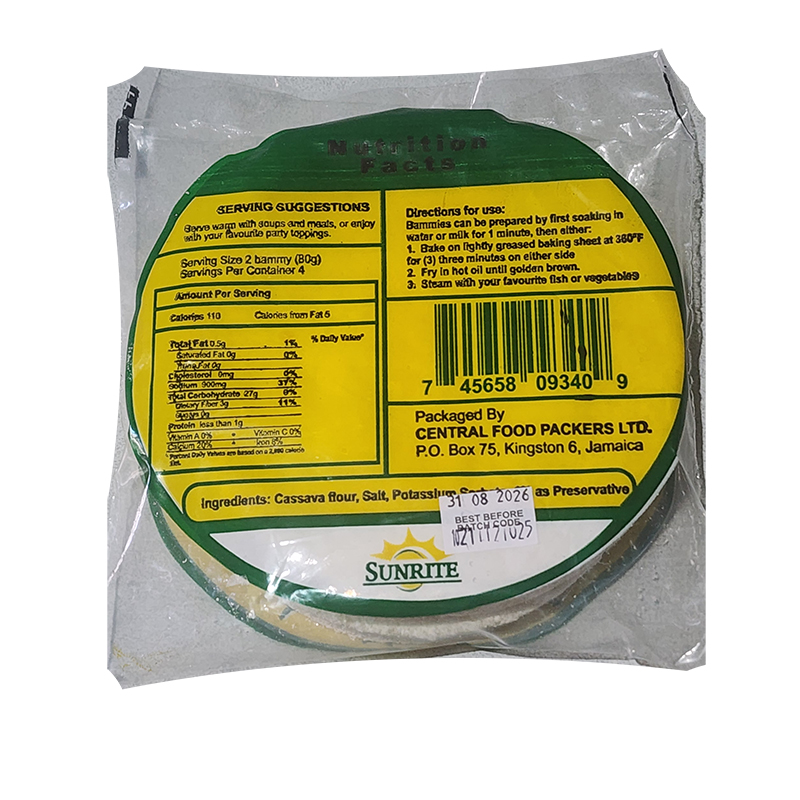 This round flat bread is available in a variety of sizes and provides the authentic taste of Jamaican cassava. Traditionally eaten in Jamaica with fish and can also be used as bread substitute; bammies are a perfect side dish for ackee and salt fish.